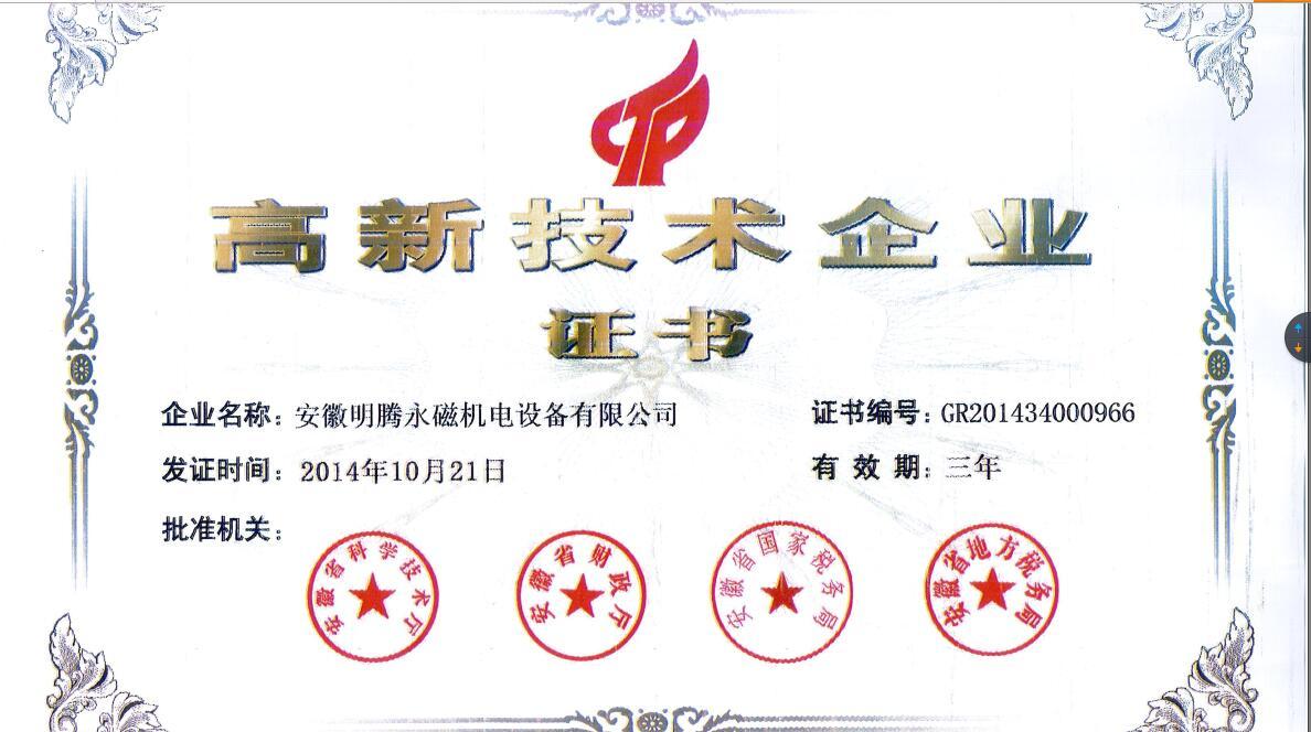 安徽明腾永磁机电设备有限公司成立于2007年10月18日,注册资金1.44亿元人民币。公司是集永磁电机研发、制造、销售及服务于一体的现代化高新技术企业,主要从事超高效稀土永磁同步电动机的研发、制造和销售,是国内从380v-10kv规格最齐全、技术最先进的永磁同步电动机龙头生产企业之一。其中6kv-10kv高压超高效永磁同步电动机及隔爆型超高效三相永磁同步电动机为国内首创。